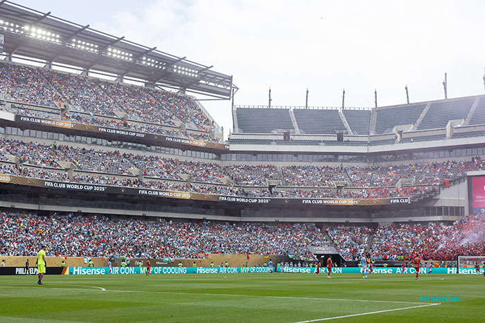 當(dāng)曼城開啟世俱杯首秀,當(dāng)多特蒙德挑戰(zhàn)馬梅洛迪日落,當(dāng)南美雙雄爭(zhēng)奪小組出線名額,當(dāng)薩爾茨堡紅牛與皇家馬德里重現(xiàn)歐冠大戰(zhàn)——2025年FIFA世俱杯的每一場(chǎng)精彩賽事,都有一句醒目的宣言同步躍入全球40億觀眾的眼簾——Hisense AIR CON,MVP OF COOLING。這不僅僅是圍擋廣告上的一句標(biāo)語(yǔ),更是中國(guó)科技品牌站上世界頂級(jí)賽事中央舞臺(tái)的自信宣言。