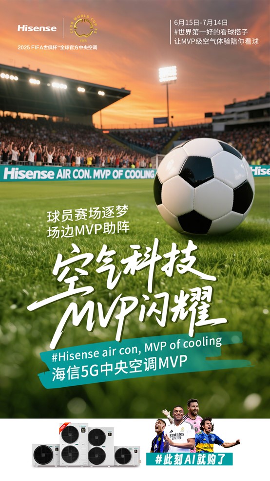 賽場(chǎng)上瞬息萬(wàn)變,舒適家居同樣需要“主動(dòng)出擊”。據(jù)了解,在此次世俱杯期間,海信中央空調(diào)還將影響力從世界賽場(chǎng)延伸至生活場(chǎng)景:在北上廣高鐵站及全國(guó)42個(gè)城市的地標(biāo)大屏上同步投放主題海報(bào),啟動(dòng)“618年中狂歡節(jié)”,讓球迷在激情觀賽之余,輕松將“冠軍同款舒適”帶回家,打造健康舒適空氣主場(chǎng)。