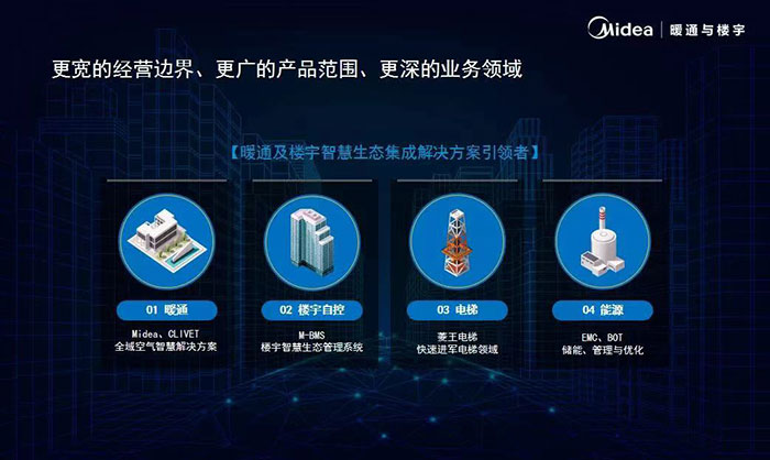 “未來,我們的業(yè)務(wù)將覆蓋暖通、樓宇自控、電梯、能源等與智慧建筑息息相關(guān)的方方面面。”美的集團(tuán)暖通與樓宇事業(yè)部總裁管金偉一語(yǔ)道破轉(zhuǎn)型方向。