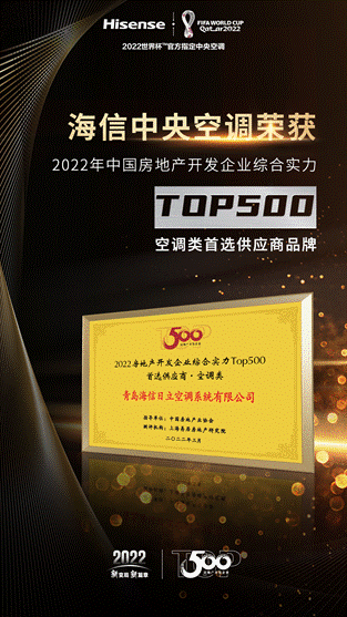 海信中央空調(diào)憑借突出的產(chǎn)品品質(zhì)與專業(yè)優(yōu)質(zhì)服務(wù),成功入選“2022中國房地產(chǎn)開發(fā)企業(yè)綜合實力TOP500 空調(diào)類首選供應(yīng)商品牌”。