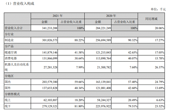 近日,美的集團(tuán)(000333.SZ)發(fā)布2021年報(bào)。年報(bào)顯示,2021年美的集團(tuán)實(shí)現(xiàn)營(yíng)業(yè)收入3412.33億元,同比增長(zhǎng)20.2%;實(shí)現(xiàn)歸屬于上市股東的凈利潤(rùn)285.74億元,同比增長(zhǎng)4.96%。艾肯網(wǎng)了解到,這也是美的集團(tuán)的營(yíng)收首次突破3000億元。