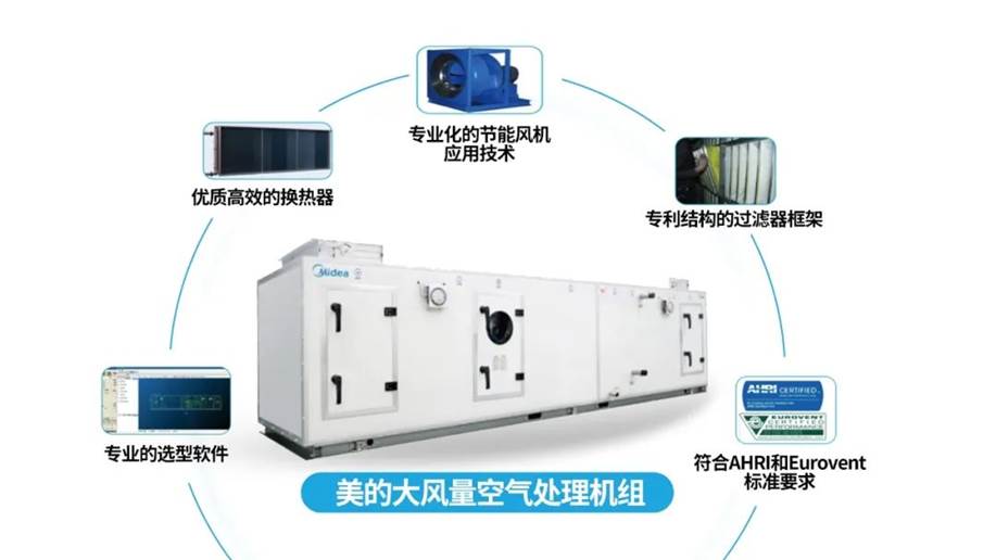 通風(fēng)空調(diào)末端系統(tǒng)是保障機(jī)場航站樓室內(nèi)環(huán)境的重要設(shè)施。為了保證空調(diào)末端送風(fēng)舒適性和可靠性,阜陽機(jī)場新建航站樓末端采用美的大風(fēng)量空氣處理機(jī),具有剛度好、漏風(fēng)率低、杜絕冷橋、噪聲低、節(jié)能效果好、智能化控制等優(yōu)點。