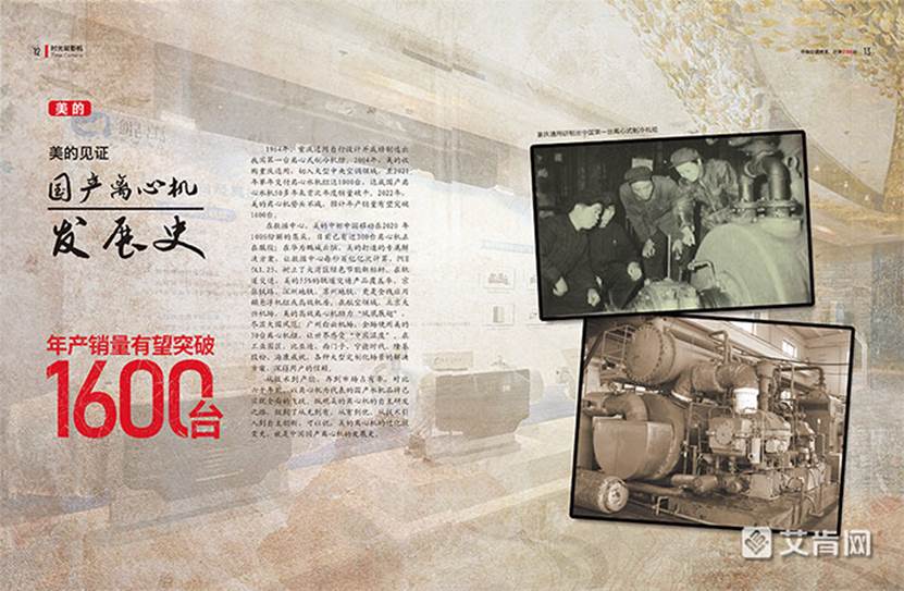 1964年,重慶通用自行設(shè)計(jì)并成功制造出我國(guó)第一臺(tái)離心式制冷機(jī)組。2004年,美的收購(gòu)重慶通用,切入大型中央空調(diào)領(lǐng)域,至2021年單年交付離心水機(jī)組達(dá)1000臺(tái),達(dá)成國(guó)產(chǎn)離心水機(jī)50多年來(lái)首次年度銷量破千。2022年,美的離心機(jī)勢(shì)頭不減,年產(chǎn)銷量突破1600臺(tái)。