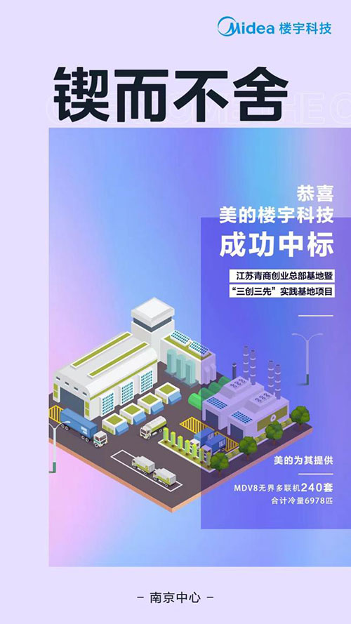 近期,艾肯網(wǎng)從美的樓宇科技南京中心獲悉,美的成功中標(biāo)江蘇青商創(chuàng)業(yè)總部基地暨“三創(chuàng)三先”實踐基地項目,為其提供MDV8無界多聯(lián)機240套,合計冷量達(dá)到6978匹。