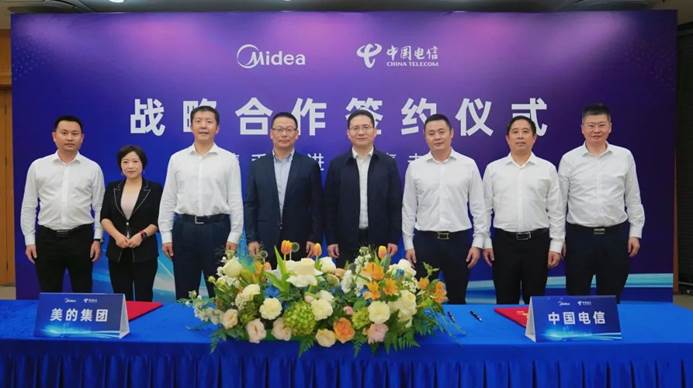 中國(guó)電信政企事業(yè)群副總經(jīng)理張文濤、中國(guó)電信佛山分公司總經(jīng)理林朝陽(yáng)、中國(guó)電信集團(tuán)工業(yè)行業(yè)事業(yè)部副總裁唐梓淇等,與美的集團(tuán)企業(yè)數(shù)字平臺(tái)應(yīng)用中心總監(jiān)周曉玲、樓宇科技事業(yè)部國(guó)內(nèi)營(yíng)銷公司基礎(chǔ)建設(shè)行業(yè)總監(jiān)傅家早、美云智數(shù)品牌市場(chǎng)部長(zhǎng)梁新月等有關(guān)負(fù)責(zé)人也出席了簽約儀式。