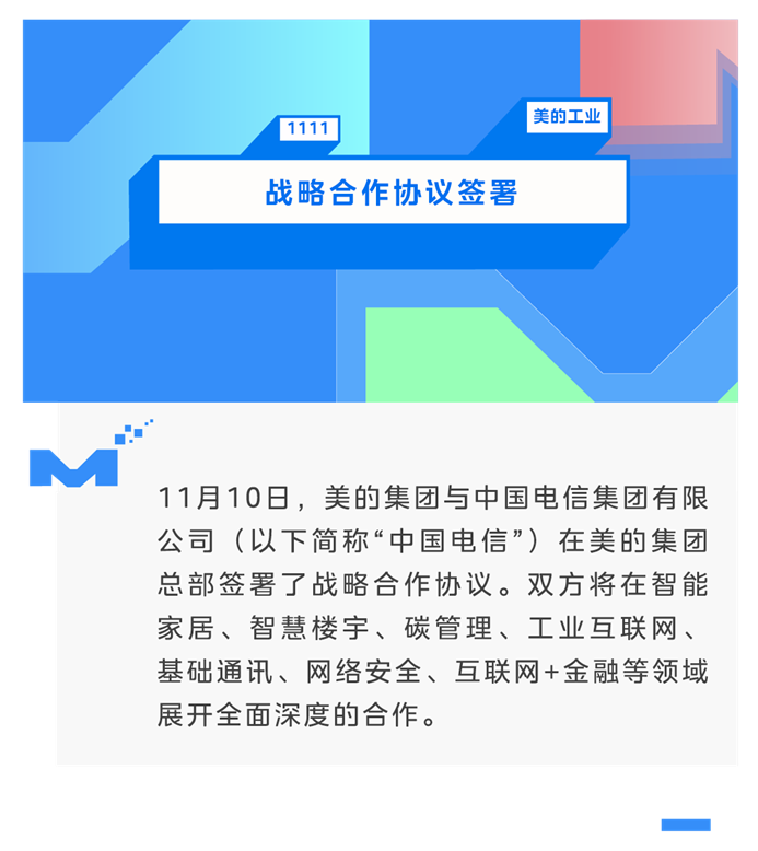 根據(jù)協(xié)議,雙方基于各自領(lǐng)域的主營(yíng)業(yè)務(wù),充分發(fā)揮各自行業(yè)優(yōu)勢(shì),共享渠道及客戶資源,全面深化戰(zhàn)略合作。例如,在智能家居方面,打通中國(guó)電信智家平臺(tái)與美的美居平臺(tái)的生態(tài),持續(xù)推進(jìn)定制合作;在智慧樓宇方面,美的樓宇科技繼續(xù)加強(qiáng)與中國(guó)電信在暖通、電梯等機(jī)電產(chǎn)品及智能控制系統(tǒng),智慧園區(qū),建筑節(jié)能,碳管理等方面加強(qiáng)合作;在基礎(chǔ)通訊領(lǐng)域,雙方持續(xù)加強(qiáng)在工業(yè)物聯(lián)網(wǎng)、智能物聯(lián)(人工智能AI+物聯(lián)網(wǎng)IoT)領(lǐng)域的技術(shù)應(yīng)用和市場(chǎng)拓展合作;在工業(yè)制造領(lǐng)域,雙方將加強(qiáng)智慧工廠、智慧園區(qū)、工業(yè)互聯(lián)網(wǎng)等合作,助力綠色可持續(xù)發(fā)展。