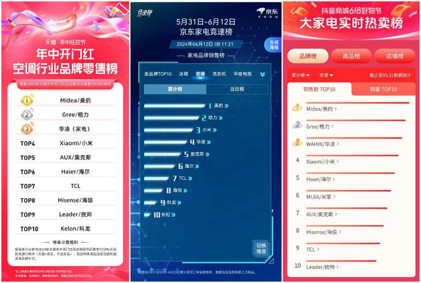 時(shí)下“6.18”活動(dòng)正在如火如荼地展開(kāi),也恰逢國(guó)內(nèi)空調(diào)市場(chǎng)的旺季階段,在已經(jīng)公布的天貓年中開(kāi)門(mén)紅空調(diào)零售榜單中、5月23日至6月12日京東家電競(jìng)速榜空調(diào)服務(wù)口碑累計(jì)榜、抖音商城“6.18”狂歡節(jié)大家電實(shí)時(shí)熱賣(mài)品牌榜中,美的空調(diào)均列行業(yè)首位,攜此優(yōu)異的勢(shì)頭,美的結(jié)合以舊換新再次加碼鉅惠活動(dòng)。