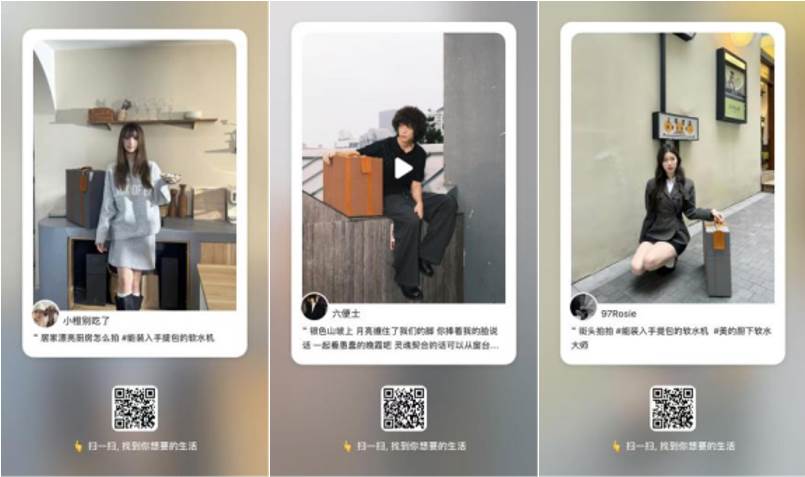 線上方面,美的廚熱官方微博發(fā)布“美的軟水機(jī)新形態(tài)—小軟包”多款不同材質(zhì)、配色的時(shí)尚創(chuàng)意海報(bào),引發(fā)了網(wǎng)友的關(guān)注和興趣;眾多時(shí)尚達(dá)人博主被官方邀請?bào)w驗(yàn)小軟包測試款,并在社交平臺分享與小軟包合拍美照,吸引了大批網(wǎng)友紛紛轉(zhuǎn)發(fā)評論,更有KOL喊話趕快量產(chǎn),求購買鏈接,讓話題熱度持續(xù)升溫;同時(shí),美的廚熱官方視頻號還放出潮流青年手提美的廚下軟水大師等比箱包時(shí)尚出街大片,引爆秋冬潮流出街新風(fēng)尚,進(jìn)一步擴(kuò)大了傳播聲量。