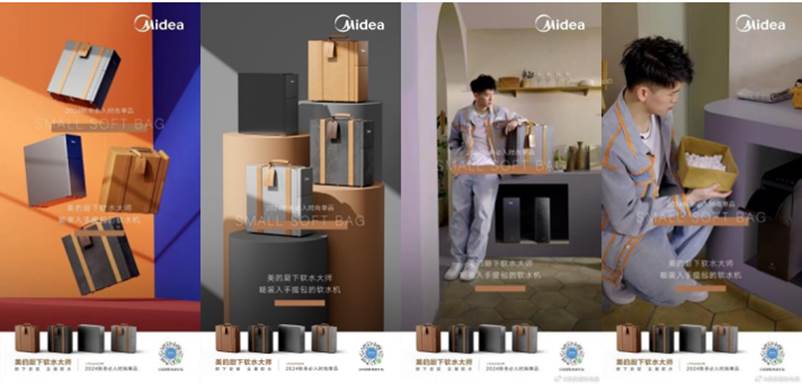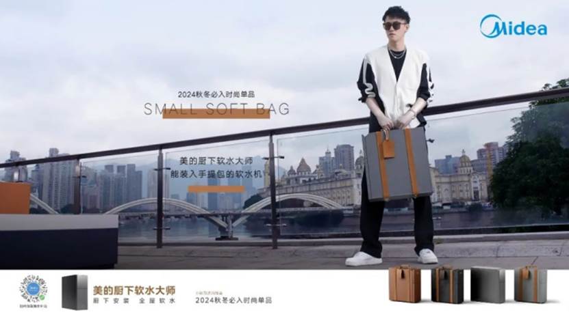 美的廚熱時(shí)尚跨界,將時(shí)尚小軟包與等比體積的“軟水機(jī)”產(chǎn)生密切關(guān)聯(lián),讓消費(fèi)者緊隨潮流新趨勢的同時(shí),也讓消費(fèi)者關(guān)注到現(xiàn)代家庭的全屋用水生活,從而巧妙地將“輕薄小體積,萬千戶型百搭時(shí)尚單品”植入用戶心智。