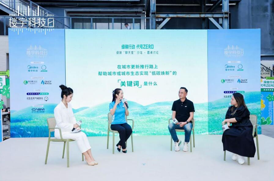 在長滿“花”的煙囪下方,多位重磅嘉賓在美的樓宇科技特邀下參與綠碳“聊天室”沙龍,共聚暢聊減碳新模式。