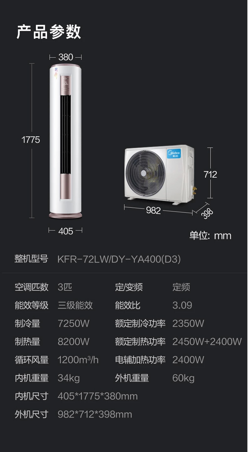 室外機(jī)外形尺寸(深)(單位:mm) 398