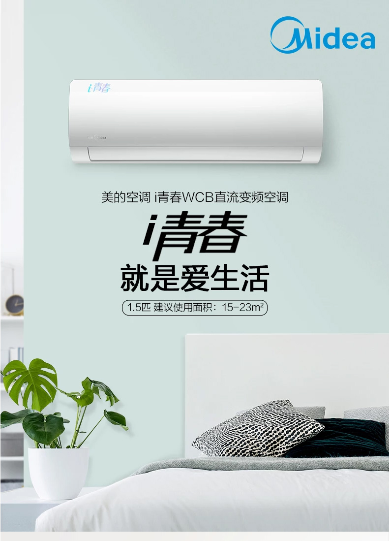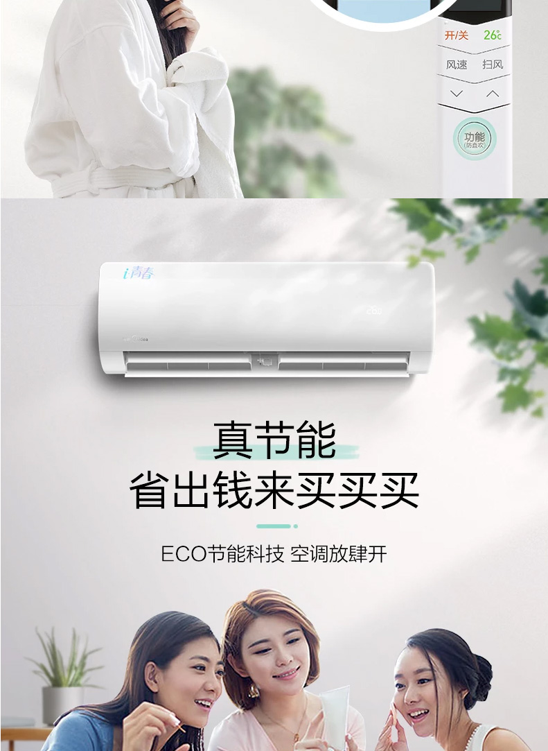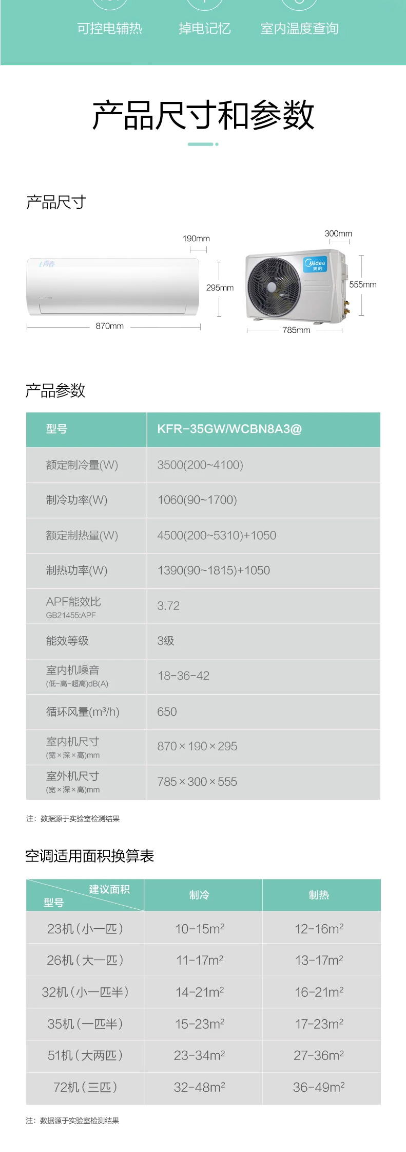 河南美的MIDEA大1.5匹智能手機(jī)遙控一級能效變頻家用冷暖 一鍵防直吹 KFR-35GW/BP3DN8Y-TP200 0