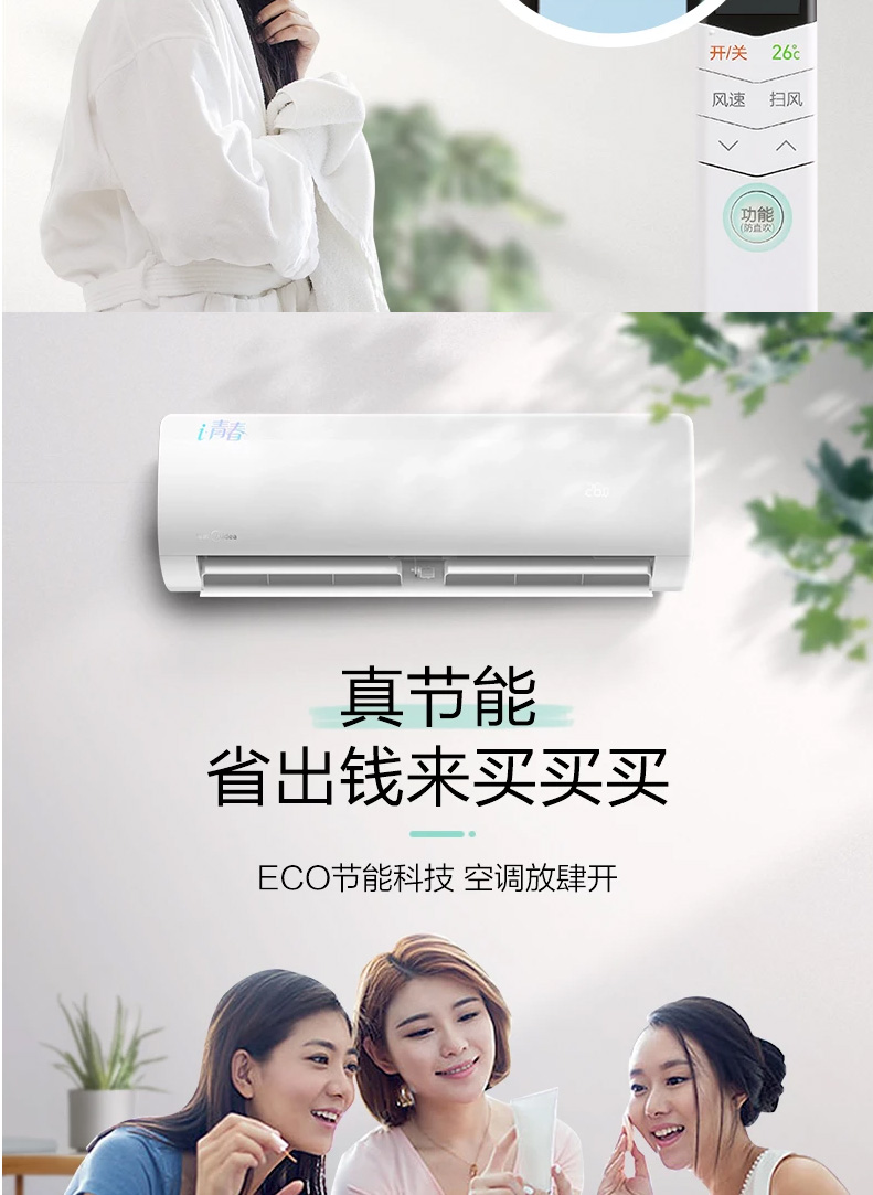 河南美的MIDEA大1.5匹智能手機(jī)遙控一級能效變頻家用冷暖 一鍵防直吹 KFR-35GW/BP3DN8Y-TP200 0