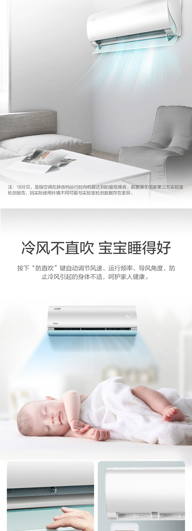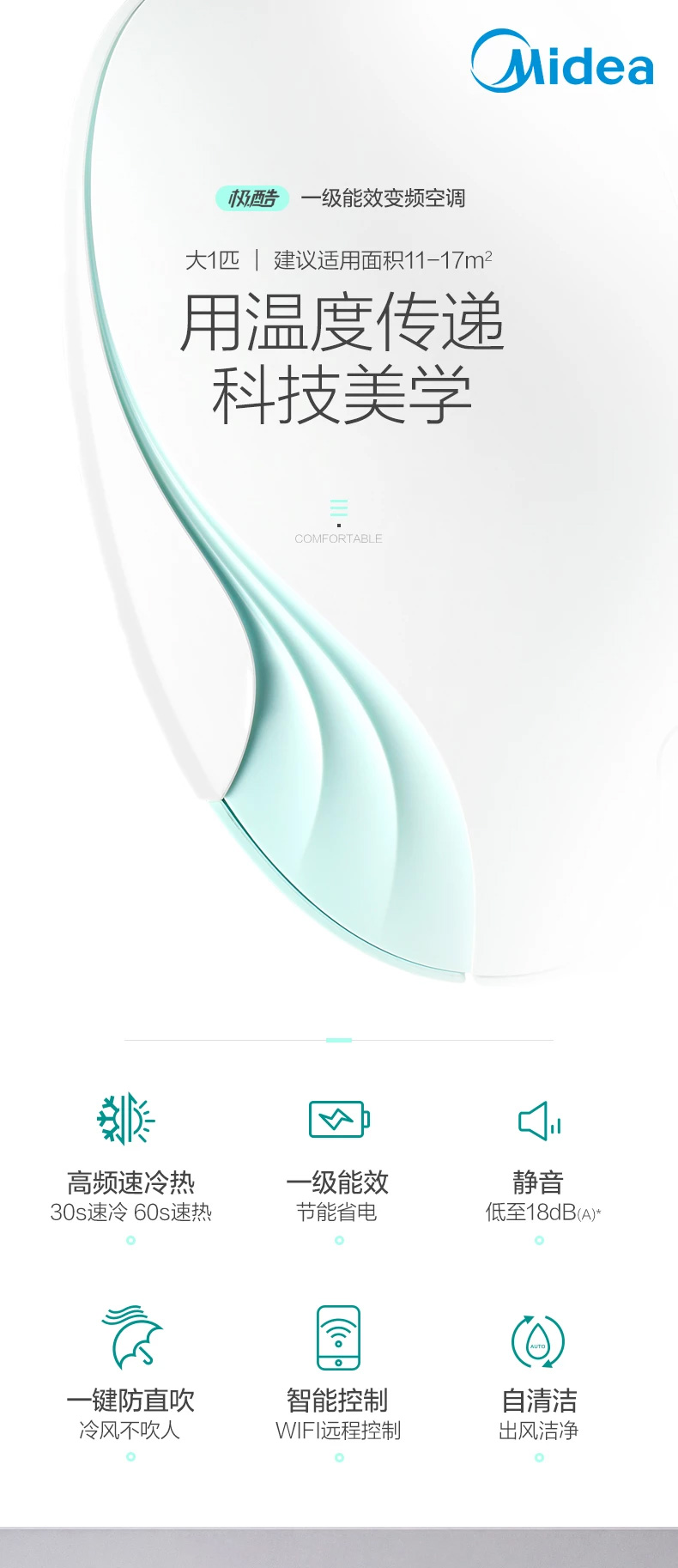 河南美的MIDEA大1.5匹智能手機遙控一級能效變頻家用冷暖 一鍵防直吹 KFR-35GW/BP3DN8Y-TP200 0