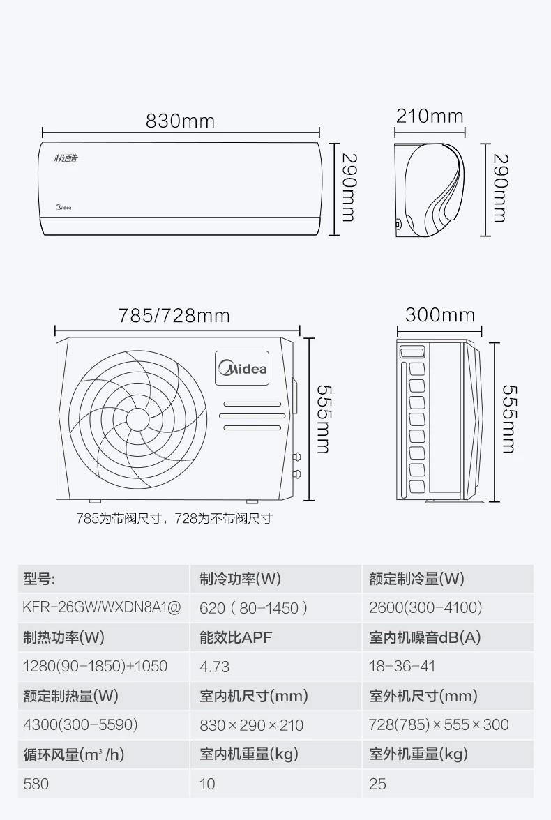 MIDEA 美的小鯨鯊新三級能效智能家電 大1匹變頻冷暖 空調掛機 KFR-26GW/N8XJA3 0