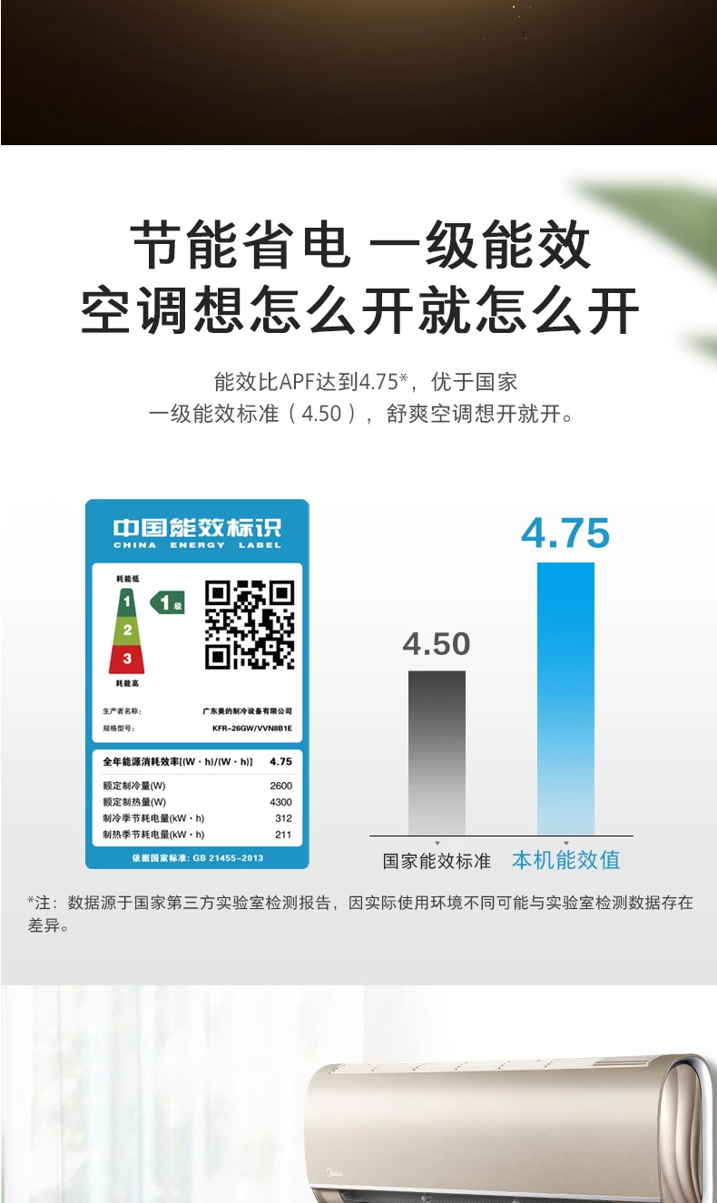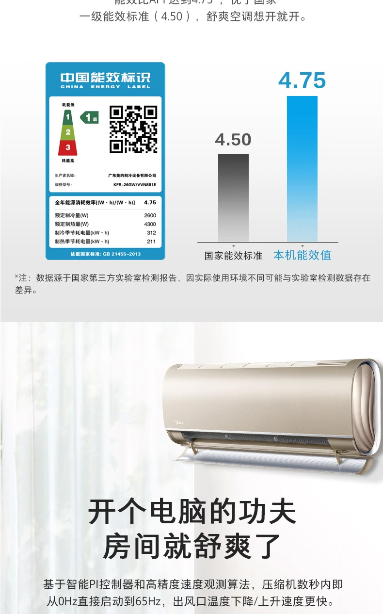 MIDEA 美的小鯨鯊新三級能效智能家電 大1匹變頻冷暖 空調(diào)掛機(jī) KFR-26GW/N8XJA3 0