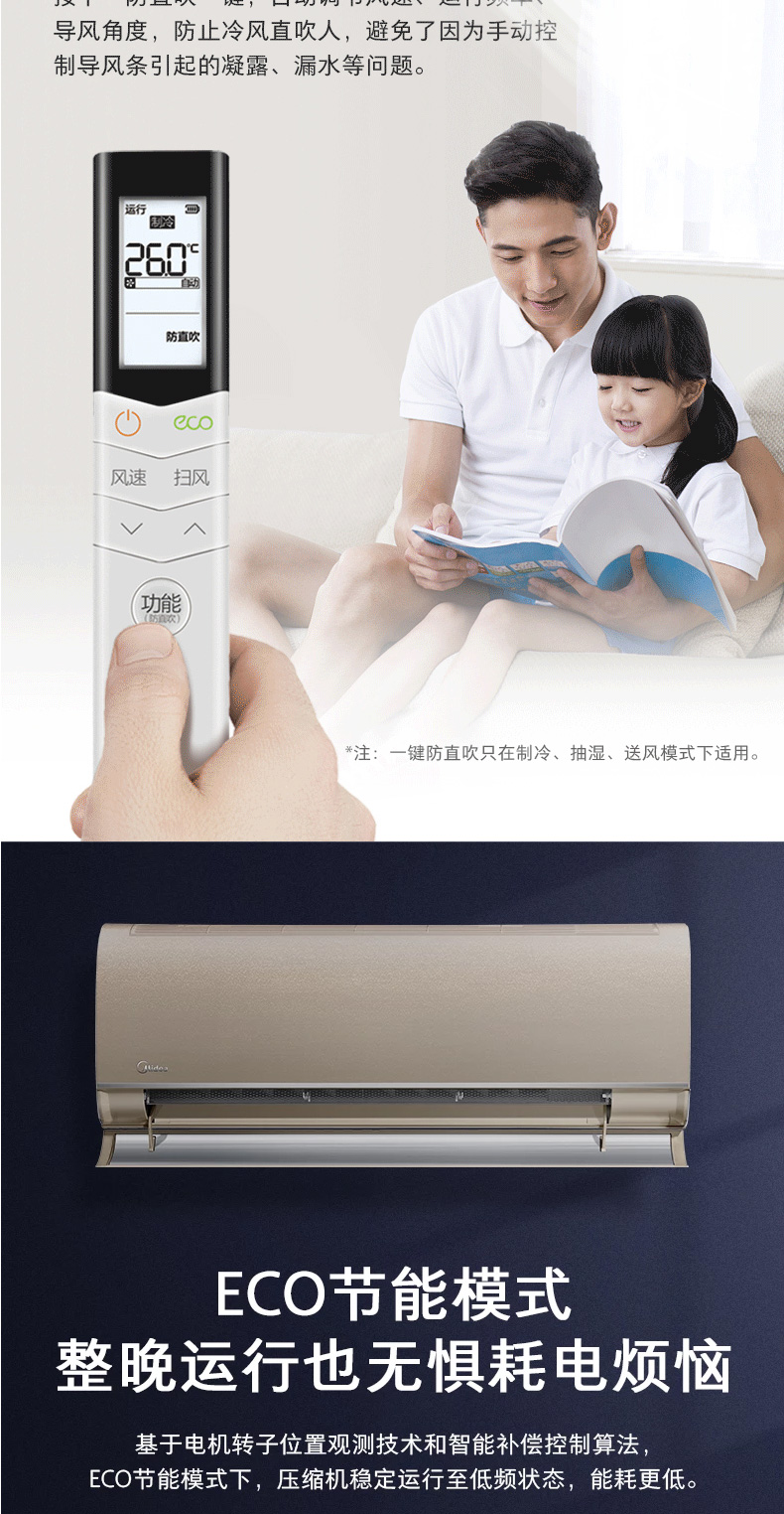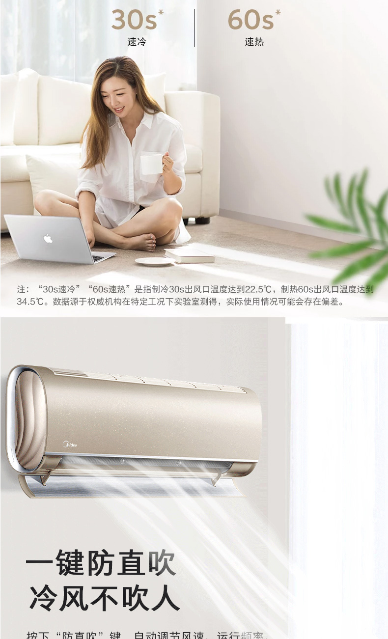 河南美的MIDEA大1.5匹智能手機(jī)遙控一級能效變頻家用冷暖 一鍵防直吹 KFR-35GW/BP3DN8Y-TP200 0