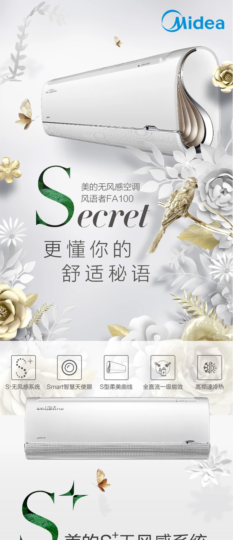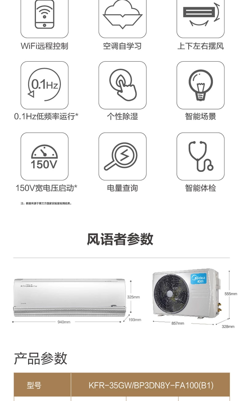 河南美的MIDEA大1.5匹智能手機(jī)遙控一級(jí)能效變頻家用冷暖 一鍵防直吹 KFR-35GW/BP3DN8Y-TP200 0