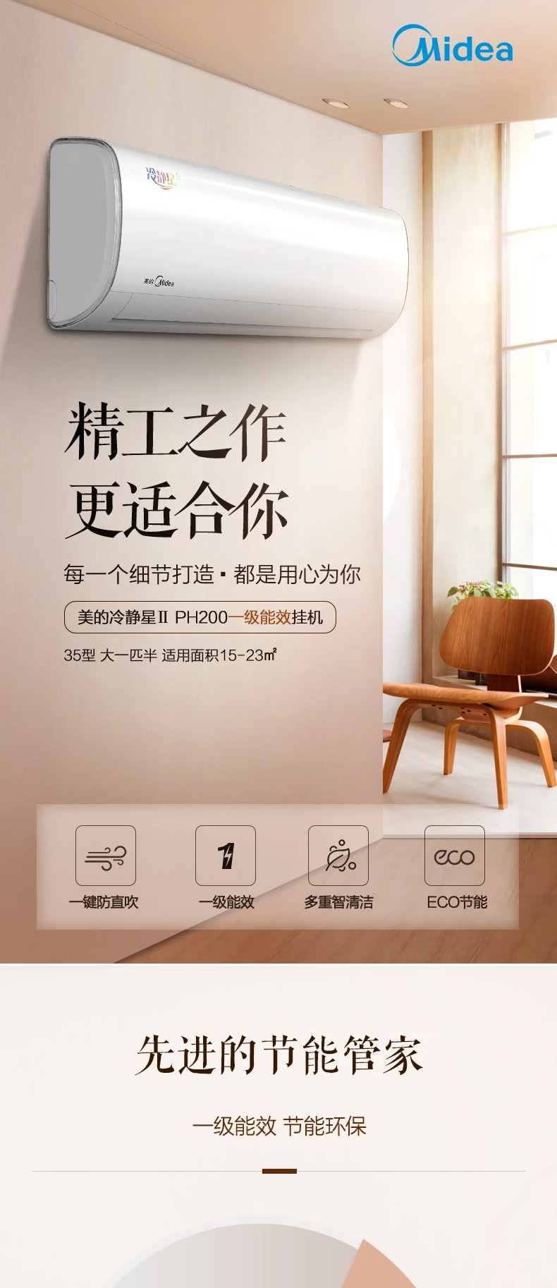 美的MIDEA風(fēng)尊1.5匹一級(jí)變頻智能家電空調(diào)掛機(jī)KFR-35GW/N8MXC1D 智慧版 0