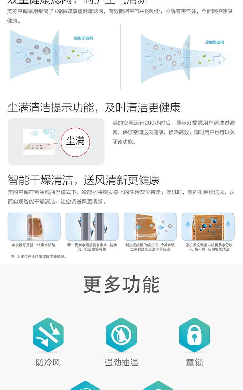 河南美的MIDEA大1.5匹智能手機(jī)遙控一級(jí)能效變頻家用冷暖 一鍵防直吹 KFR-35GW/BP3DN8Y-TP200 0