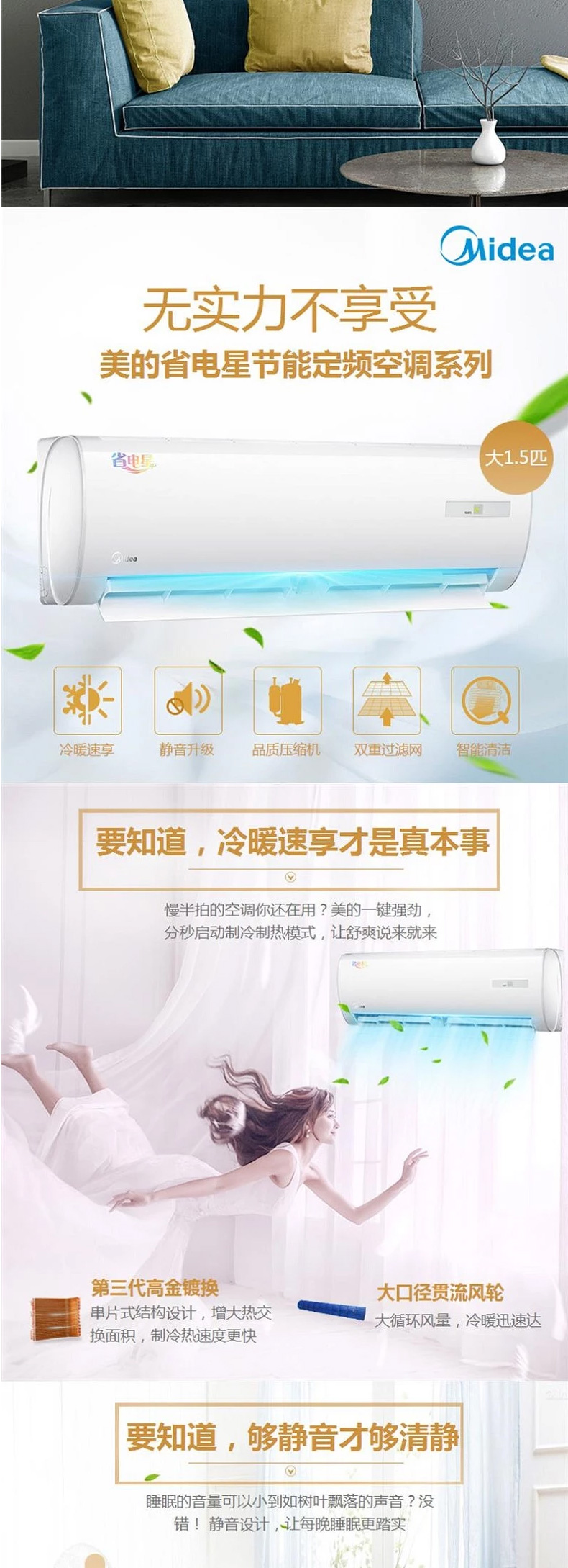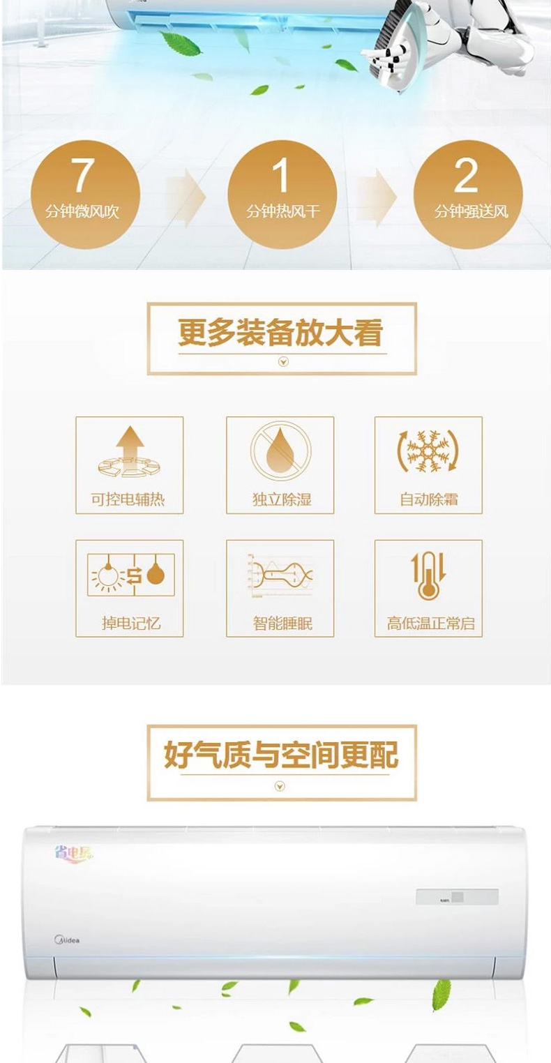 河南美的MIDEA大1.5匹智能手機(jī)遙控一級能效變頻家用冷暖 一鍵防直吹 KFR-35GW/BP3DN8Y-TP200 0