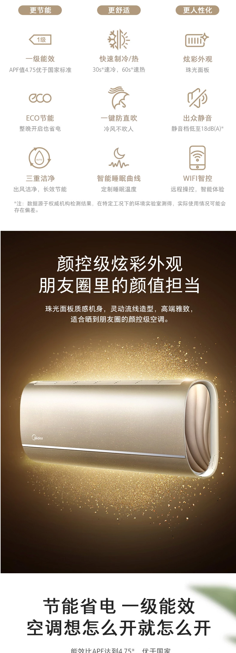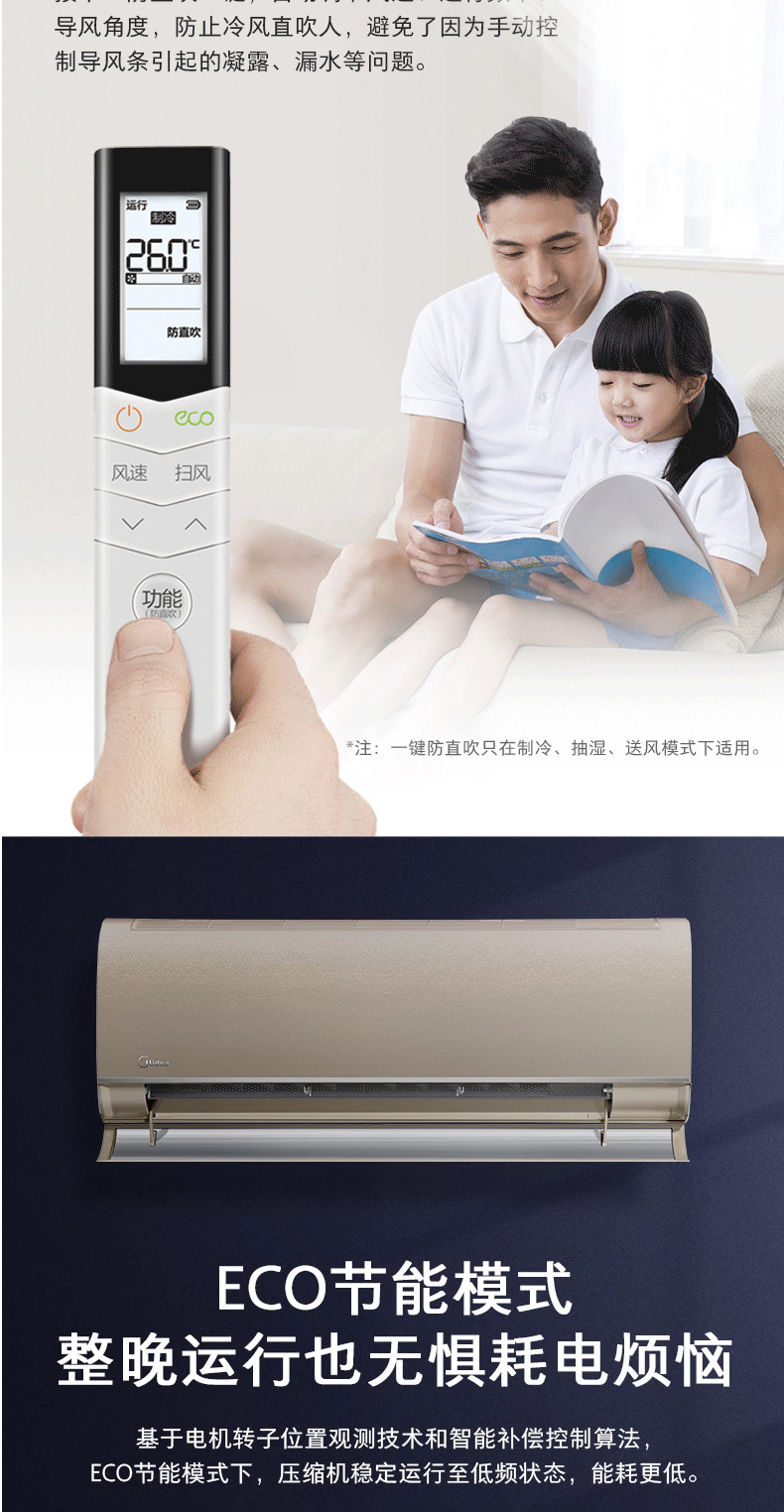 河南美的MIDEA大1.5匹智能手機(jī)遙控一級(jí)能效變頻家用冷暖 一鍵防直吹 KFR-35GW/BP3DN8Y-TP200 0