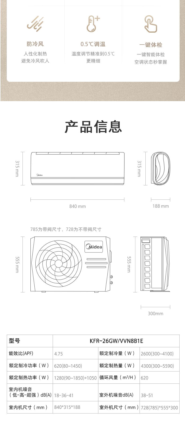 產(chǎn)品型號(hào) KFR-26GW/VVN8B1E