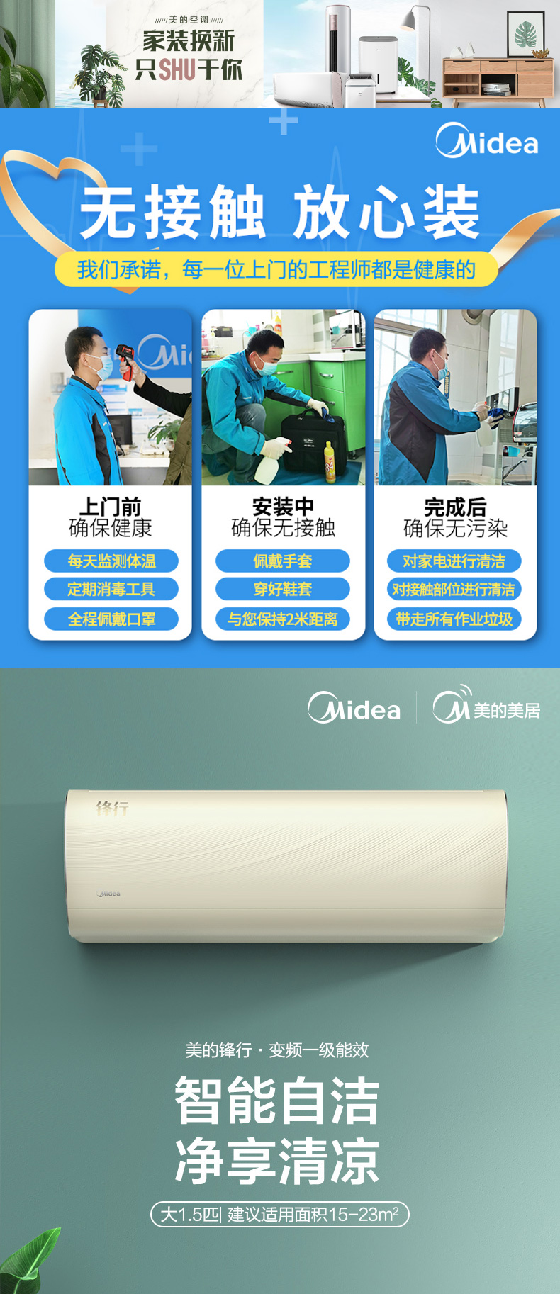 河南美的MIDEA大1.5匹智能手機(jī)遙控一級能效變頻家用冷暖 一鍵防直吹 KFR-35GW/BP3DN8Y-TP200 0