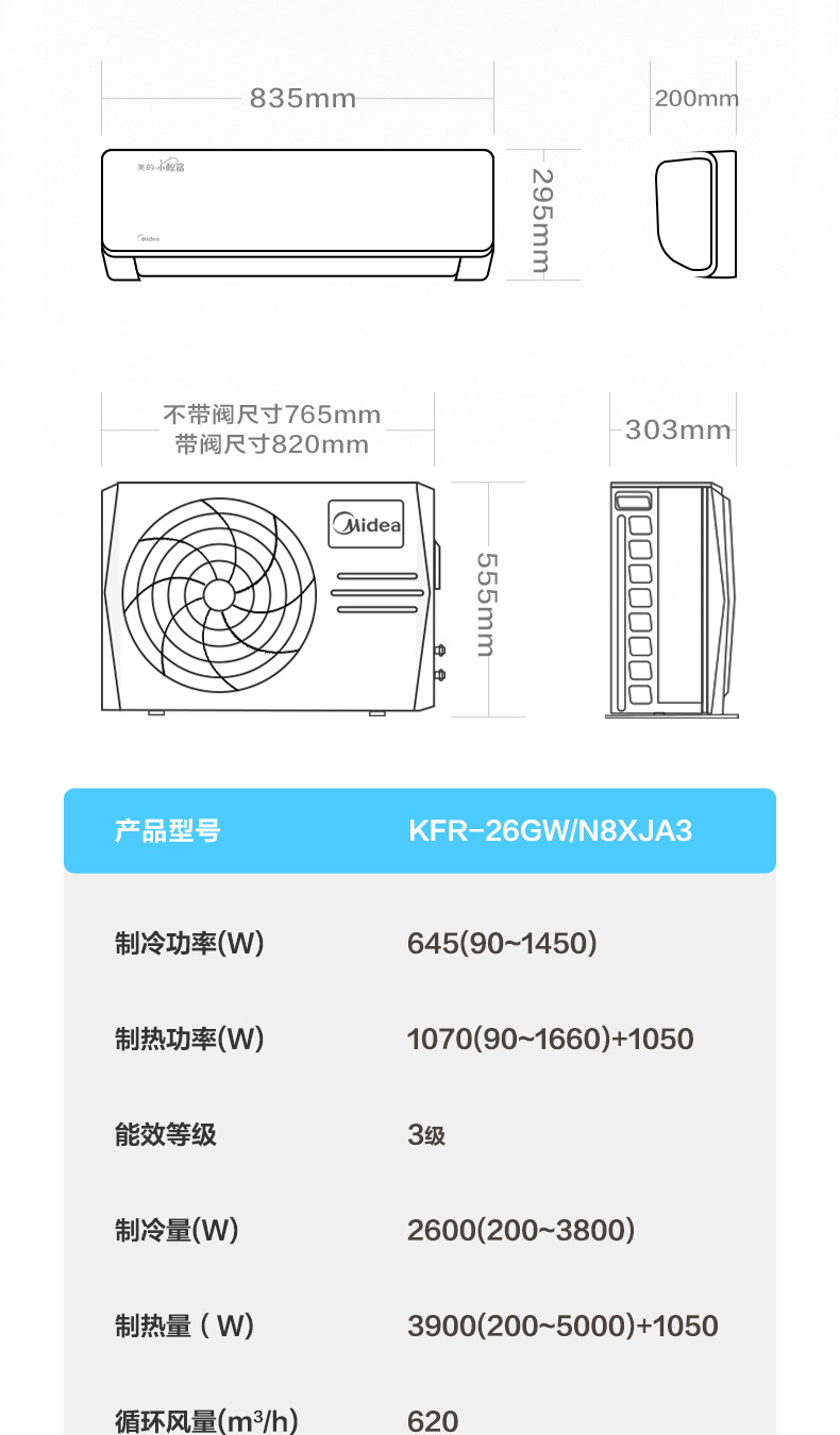 包裝清單: 遙控器* 1 件、7 號電池 * 2 節(jié)連接管* 1 套、包扎帶* 1 卷、密封膠泥 *200 克、排水管 * 1 根、墻孔擋板 * 1 件、安裝板 * 1 件、自攻螺釘 * 5 顆、塑料脹管 * 5 個、排水接頭 * 1 個、排水接頭密封圈 * 1 個、使用安裝說明書 * 1 本、連接管防拆帽 * 2 個、室內(nèi)機 *1臺、室外機 *1臺