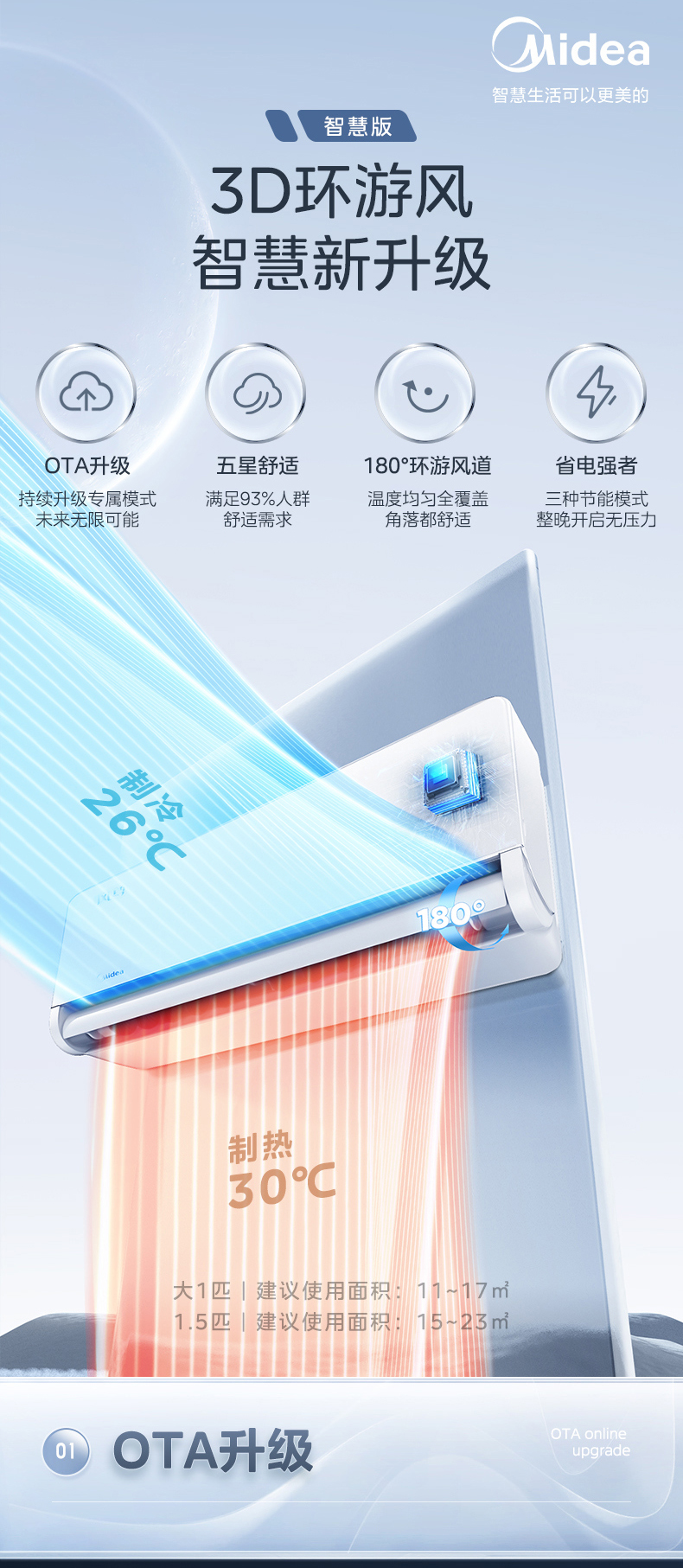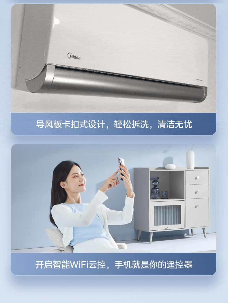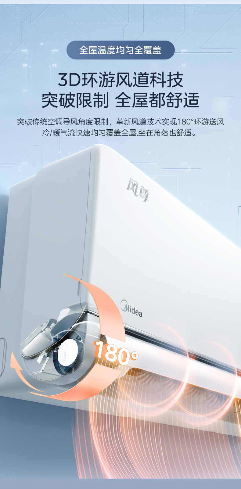 河南美的MIDEA大1.5匹智能手機(jī)遙控一級(jí)能效變頻家用冷暖 一鍵防直吹 KFR-35GW/BP3DN8Y-TP200 0