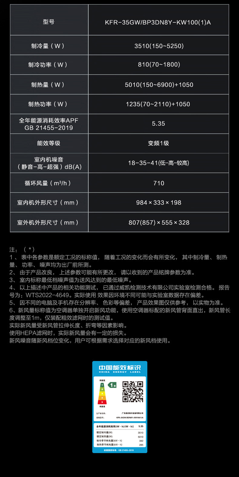 產(chǎn)品型號(hào) KFR-35GW/BDN8Y-KW100(1)A